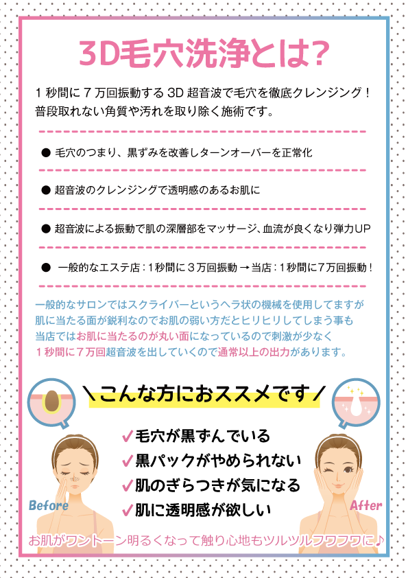 3D毛穴洗浄+小顔フェイシャルフルコース