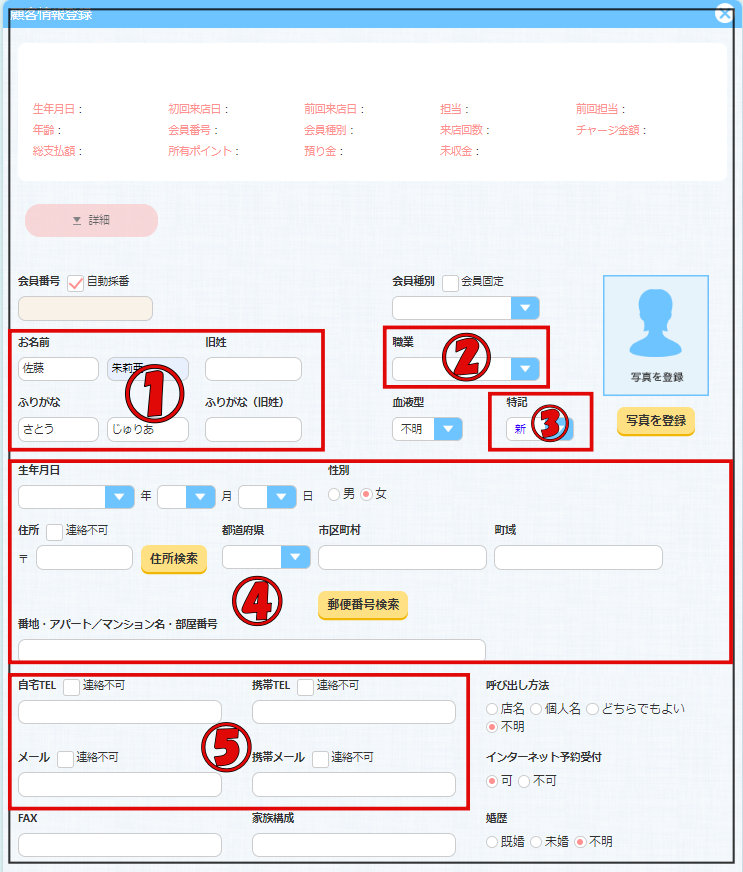 ❺自宅TEL/携帯TEL/メール/携帯メール