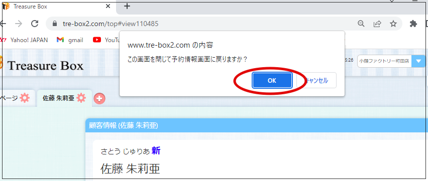 ⑥予約情報画面に戻ったら、「レジ担当への申し送り/メモ」に