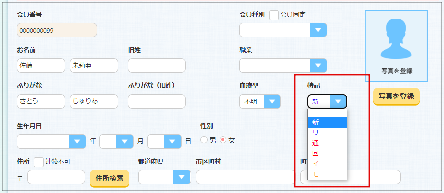⑦特記事項の内容を変更し、更新ボタンをクリックし、顧客名簿を閉じる。