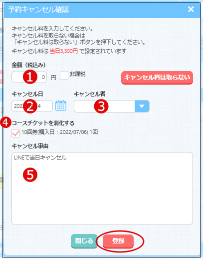 当日のキャンセル … コースチケットを消化するので☑を付ける。